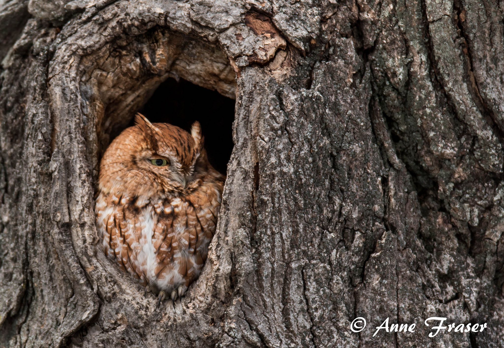 nest. The screech owl’s stocky but short